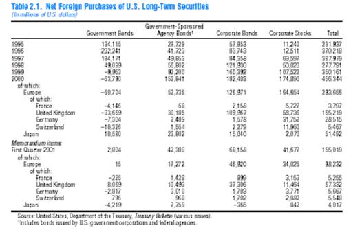 Проанализируйте таблицу[5] иностранных вложений в долгосрочные ценные бумаги США.