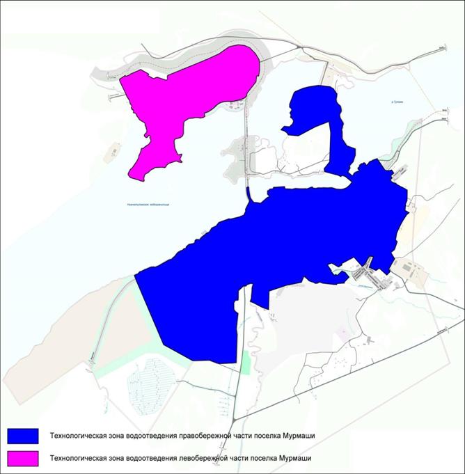 Рисунок 3. Границы технологических зон водоотведения муниципального образования городское поселение Мурмаши.