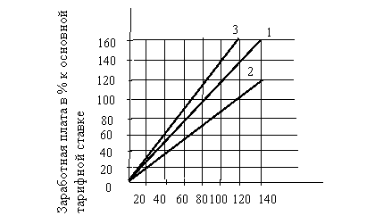 Система нарастающих тарифных ставок рекомендуется для применения при использовании технически обоснованных норм труда и позволяет не просто стимулировать работника к повышению производительности труда а приводит к резкому ее увеличению в определенных пределах, так как при выполнении установленного задания до 90%, работа оплачивается по пониженной тарифной ставке (но не ниже минимальных гарантий по оплате труда); от 90 до 100% – по установленной тарифной ставке, а при перевыполнении – по повышенной. Этот фактор побуждает работника не только к выполнению установленного задания, но и к его перевыполнению. В рекомендуемой системе используется сочетание трех частных вариантов зависимости зарплаты от уровня производительности труда: