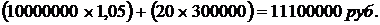 Пример: базисный фонд зарплаты составил 10 млн. руб. прирост объема производства – 5%. Увеличение численности – 20 человек. Средняя заработная плата работающего – 300 000руб. Тогда плановый фонд заработной платы в нашем примере составит: ![]()