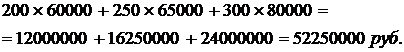 Выпускаются изделия А 60000шт. по сдельной расценке за 1шт. 200руб. Изделий Б – 65000шт. по 250руб., изделий В – 80000шт. по 300руб. Тогда ФЗП рабочих по сдельным расценкам составит