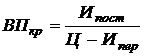 Критический объем или порог рентабельности, при котором предприятие не имеет ни прибыли, ни убытков, определяется следующим образом