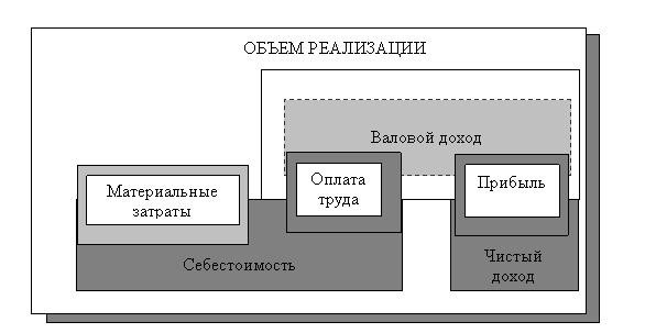 Рис. 13.1. Взаимосвязь реализации, себестоимости и чистого дохода