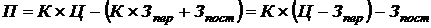 В соответствии с экономическим смыслом точки безубыточности прибыль в этой точке равна нулю