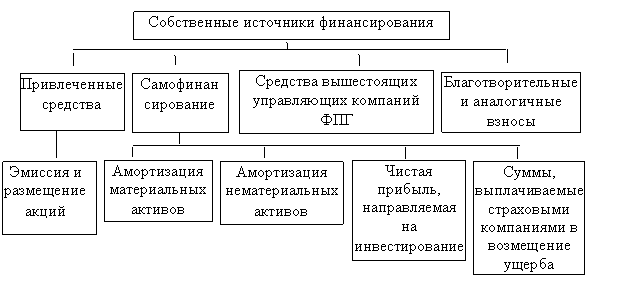 Вся совокупность источников финансирования инвестиционной деятельности подразделяется на собственные и внешние (рис. 14.1 и 14.2)