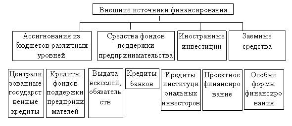 Рис. 14.2. Внешние источники и формы финансирования инвестиционных проектов