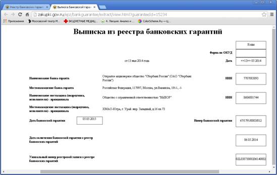Распечатку выписки из реестра банковских гарантий осуществляет Банк, подписывает ее уполномоченным лицом от имени банка и скрепляет печатью банка.