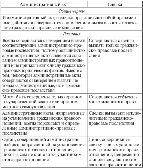 Юридические акты –это правомерные действия, которые порождают соответствующие юридические последствия лишь тогда, когда они совершены со специальным намерением вызвать эти последствия. К числу юридических актов относятся административные акты, сделки и решения суда.Сравнительная характеристика административного акта и сделки выглядит следующим образом: