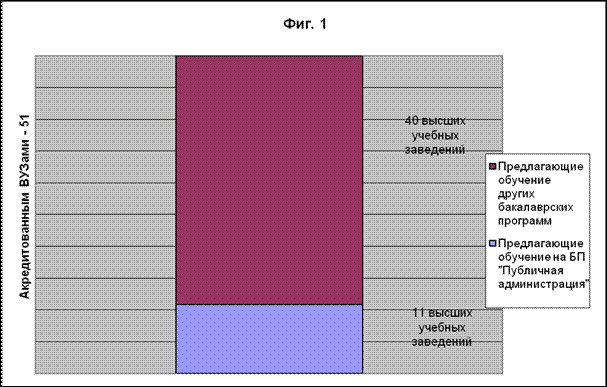 o соотношение между 11-тью ВУЗами, предлагающими обучение по Бакалаврской программе “Публичная администрация” и 40-ка ВУЗами в Республике Болгария, предлагающими другие бакалаврские программы в 2009г. показывает, приблизительно 1:4(фиг.1)