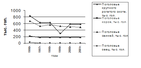 Из таблицы 7.1. видно, что в Республике Беларусь по сравнению с 1990 годом произошло сильное уменьшение (в разы) поголовья всех видов животных и особенно овец (в 47 раз).