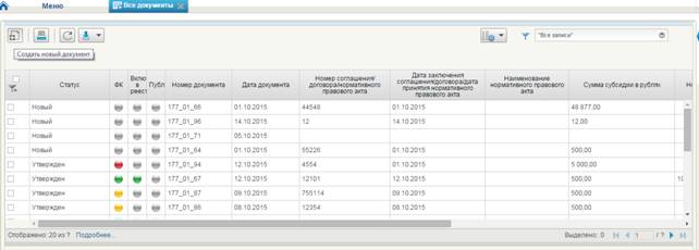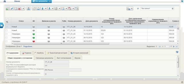Рисунок 3. Интерфейс Списковой формы «Сведений о соглашении»