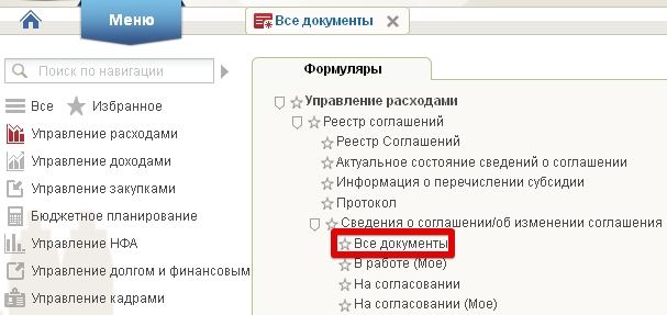 1) Выбрать в меню пункт «Все документы» (Рисунок 4).