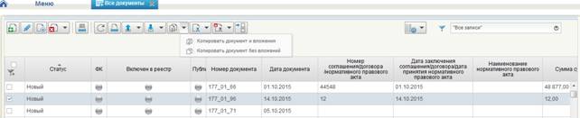 2) Создать экземпляр формуляра «Сведение о соглашении/об изменении соглашении» с типом «Первичный», одним из возможных способов (статус «Новый»):
