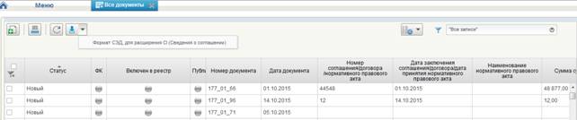 Рисунок 5. Создание нового документа «Сведения о соглашении/об изменении»