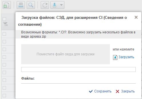Рисунок 8. Окно импорта документа «Сведения о соглашении/об изменении соглашения»