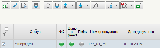 d. выбрать документ, утвержденный в организации (согласованный или не согласованный в ФК), нажать кнопку