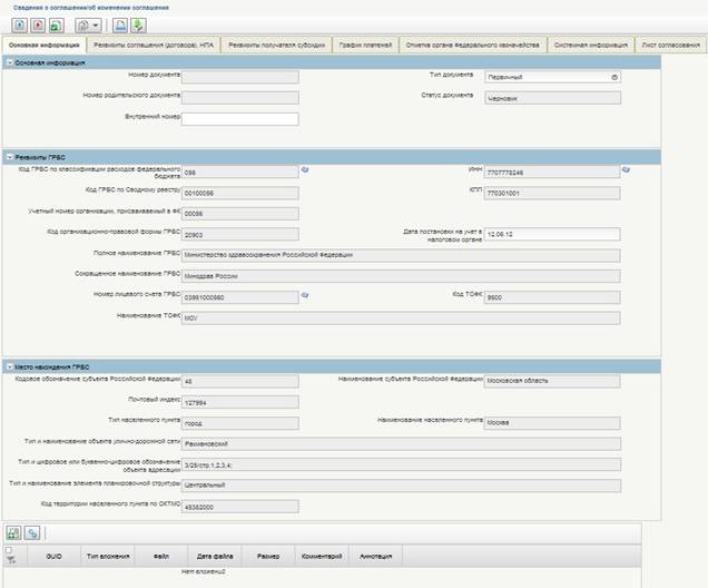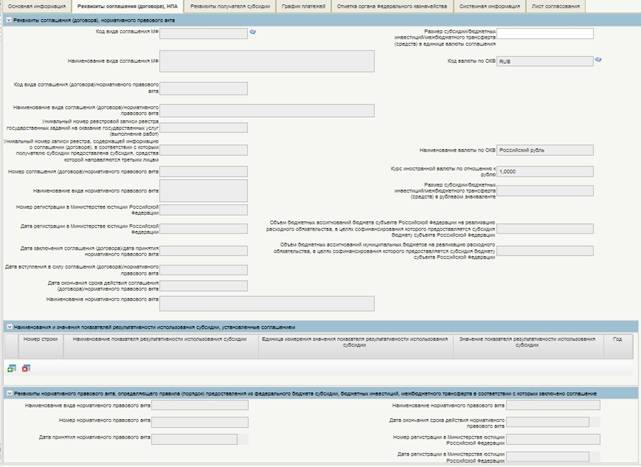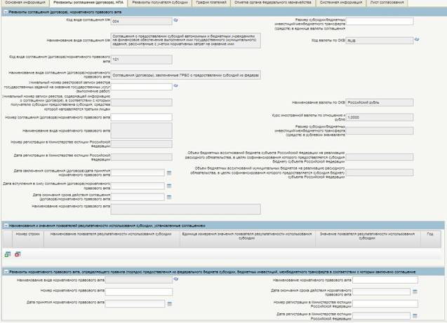 Рисунок 11. Вкладка «Реквизиты соглашения (договора), нормативного правового акта»