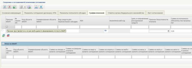 Рисунок 17. Вкладка «График платежей» чекбокс – Признак ФАИП