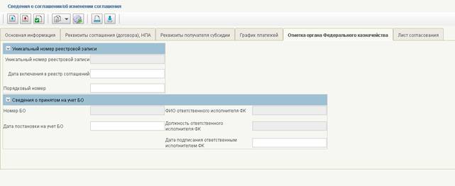 Вкладка «Отметка органа ФК». заполняется автоматически при получении из органа ФК номера зарегистрированного БО.