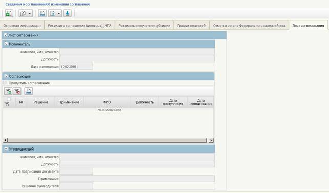 Таблица 9. Описание заполнения полей на вкладке «Лист согласования»