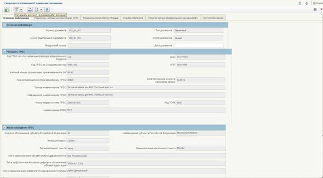 Рисунок 35. Печатная форма документа «Сведения о соглашении/об изменении соглашения» вкладка «Основная информация»