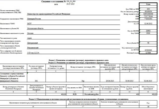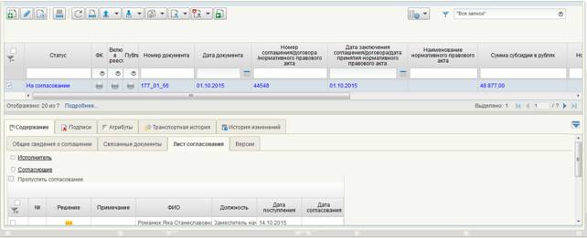 Рисунок 29. Экземпляр формуляра «Сведения о соглашении» на утверждении