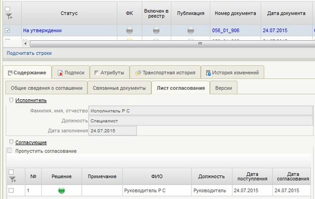4.2.2. Согласование документа «Сведения о соглашении/об изменении соглашения»