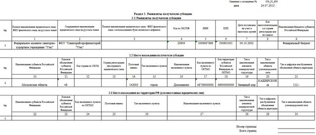 Рисунок 36. Печатная форма документа «Сведения о соглашении/об изменении соглашения» вкладка «Реквизиты получателя»