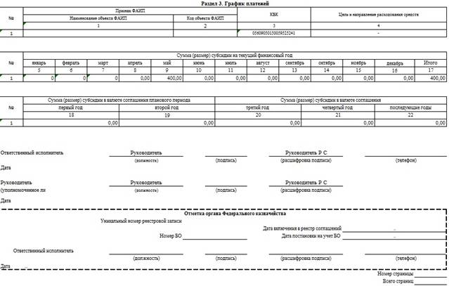 Рисунок 37. Печатная форма документа «Сведения о соглашении/об изменении соглашения» вкладки «График платежей» и «Отметка органа Федерального казначейства»