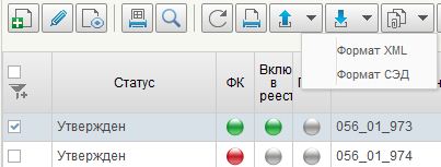 Для выгрузки документа в формате XML или текстового файла, необходимо выбрать интересующий документ и нажать кнопку