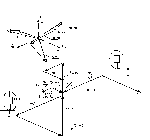 Рис. 2. Векторные диаграммы подстанции с двухфазным симметрирующим трансформатором |