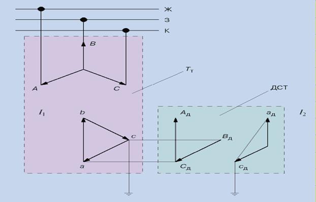 В отличие от применяемых, трансформатор для предлагаемой в [1] системы тяги, имеет еще ряд обмоток, соединенных в неполную звезду. Проследим пути тока и для этих обмоток.