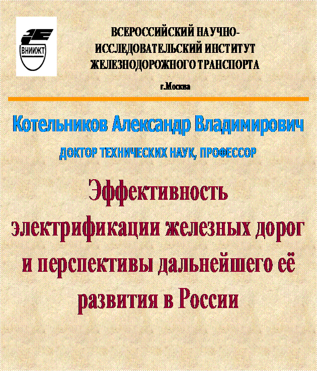 2.1.5. Эффективность электрификации железных дорог и перспективы дальнейшего её развития (информация ВНИИЖТ)