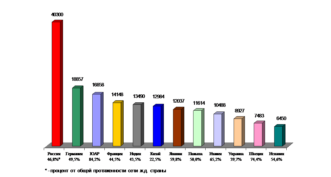 Лидирующие страны мира по протяженности электрифицированных линий (более 5000 км)