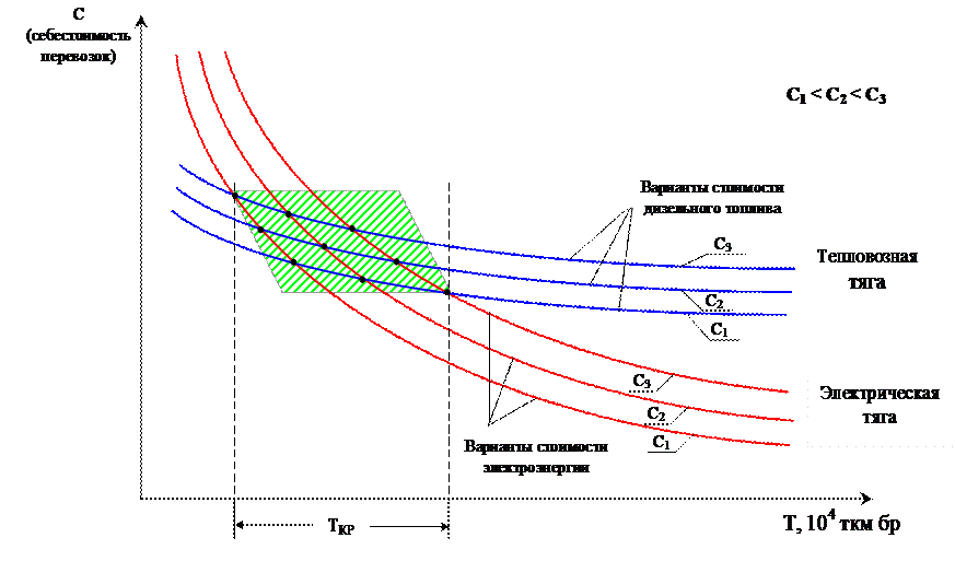 Определение критического объема грузонапряженности (Ткр) экономически целесообразного перевода тяги поездов с тепловозной на электрическую