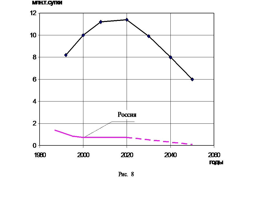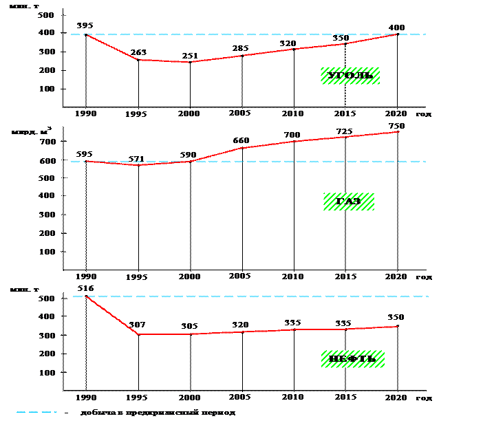 Прогноз добычи органического топлива по «Энергетической стратегии России на период до 2020 г.»