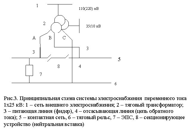 2.2.3 Схема электроснабжения тяги переменного тока 1х25 кВ.