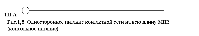 1.2.Одностороннее питание контактной сети на всю длину МПЗ рис. 1,б.