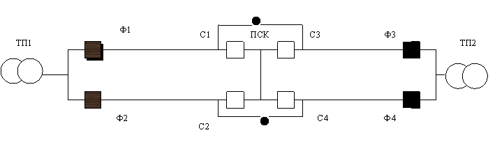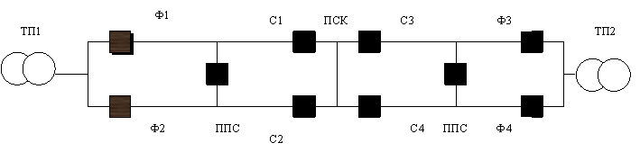 Между ПСК и ТП включёны дополнительно пост параллельного соединения (ППС), который электрически соединяет КС обеих путей.