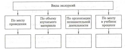 6. На основании изучения литературы заполните схему «Виды экскурсий».
