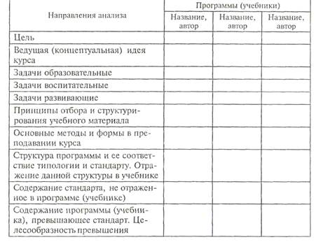 8. Проанализируйте две-три наиболее распространенные в данном регионе учебные программы к курсам, включенным в Федеральный перечень. Работу выполняйте с использованием программ и соответствующих учебников. Данные заполните в таблицу: