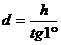 Проводим горизонтальную линию и разбиваем ее на необходимое количество отрезков через 1º или более. Затем рассчитываем величину заложения горизонталей – d для склона крутизной 1º
