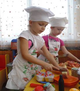 Если ребенок испытывает затруднения в игре, воспитатель просит более сильного ребенка показать, как можно сыграть эту роль. Поощрять взаимовыручку. Воспитатель в процессе игры наблюдает и по необходимости помогает поварам в приготовлении фруктовых шашлычков.