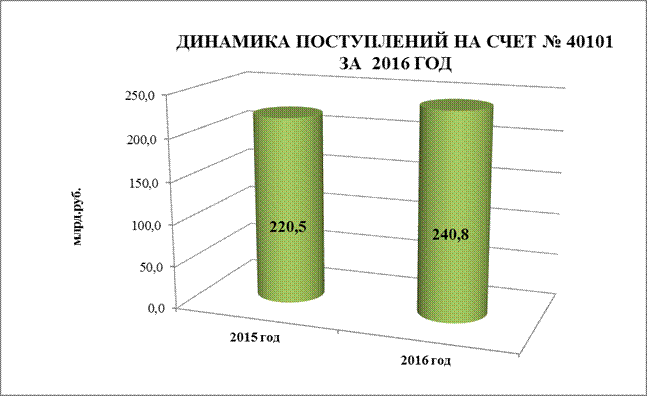 За 2016 года на единый счет по учету доходов Управления поступило 240,8 млрд. руб., что на 8,4% больше уровня прошлого года (Диаграмма 1).