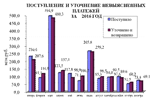 Основной причиной значительного роста невыясненных поступлений в марте 2016 года явилось изменение реквизитов получателя Территориального фонда обязательного медицинского страхования.