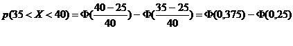 в интервал (35;40) найдем, используя ту же формулу, тогда