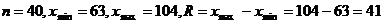 – найдем по формуле Стерджеса число интервалов (обратите внимание, что число интервалов – целое число)