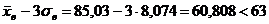 Для проверки выдвинутой гипотезы воспользуемся правилом «трех сигм», согласно которому при нормальном распределении признака все его значения принадлежат интервалу (