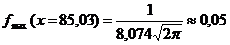 6) Для построения кривой нормального распределения по опытным данным примем в формуле Гаусса математическое ожидание