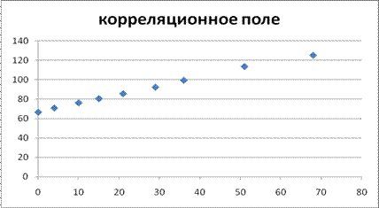 1) Построим корреляционное поле. Для этого на координатную плоскость нанесем точки ![]()
